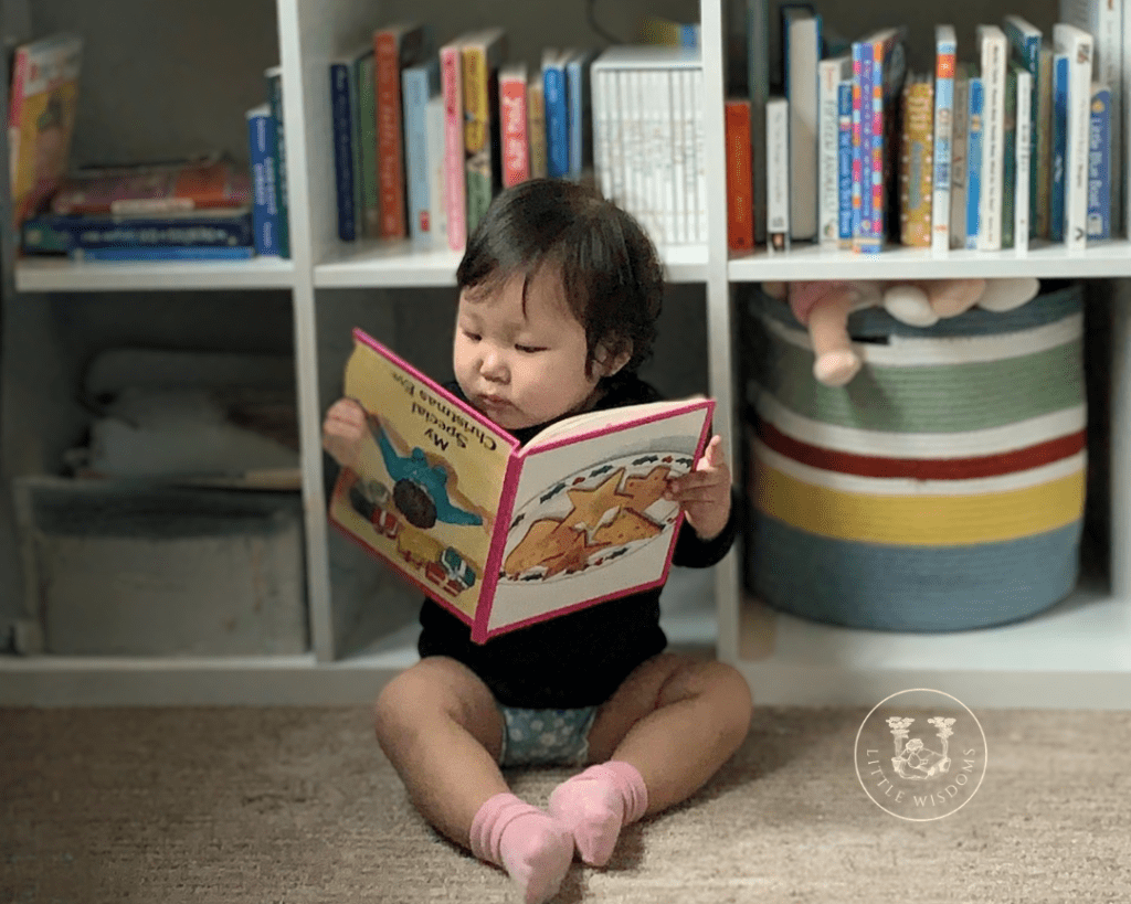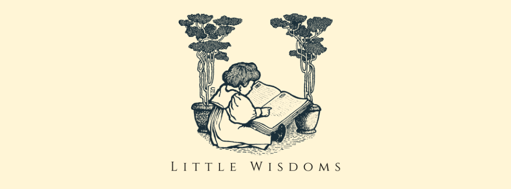 The Little Wisdoms logo is inspired by one of my favorite photos of my daughter, lost in a book, “reading” it intently upside down. Similarly, the logo portrays a young girl studying a huge book on her lap. I’ve had many days where I was lost in a book, without any care in the world. And to see my own child reading a book on her own! It doesn’t matter that she was looking at it upside down. Her desire to read is what matters to me. In the same way, I believe God delights in our humble (and rudimentary) attempts to seek Wisdom because our search for true Wisdom will always lead to Him. The Little Wisdoms logo is my reminder to remain a little child at heart—open, curious, humble, and always learning.